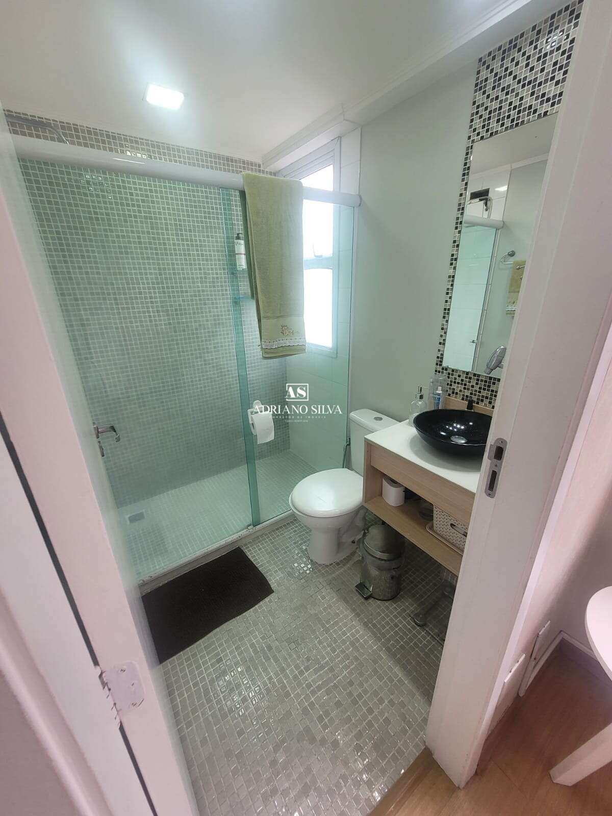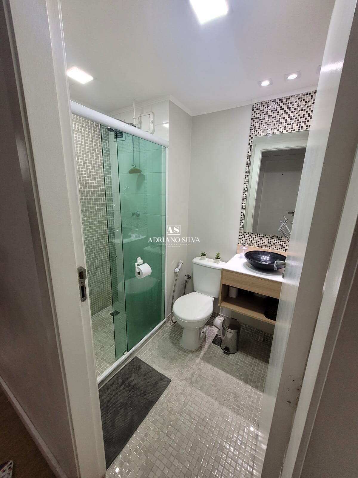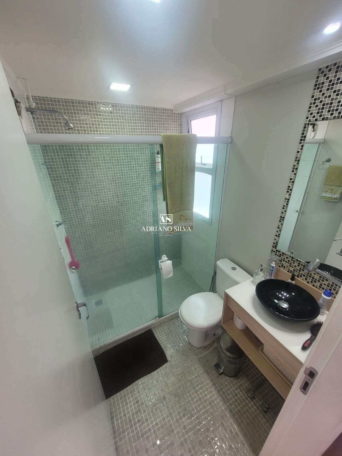 Banheiros: modernos, decorados com pastilhas, bancadas com cubas sobrepostas e chuveiros a gás.