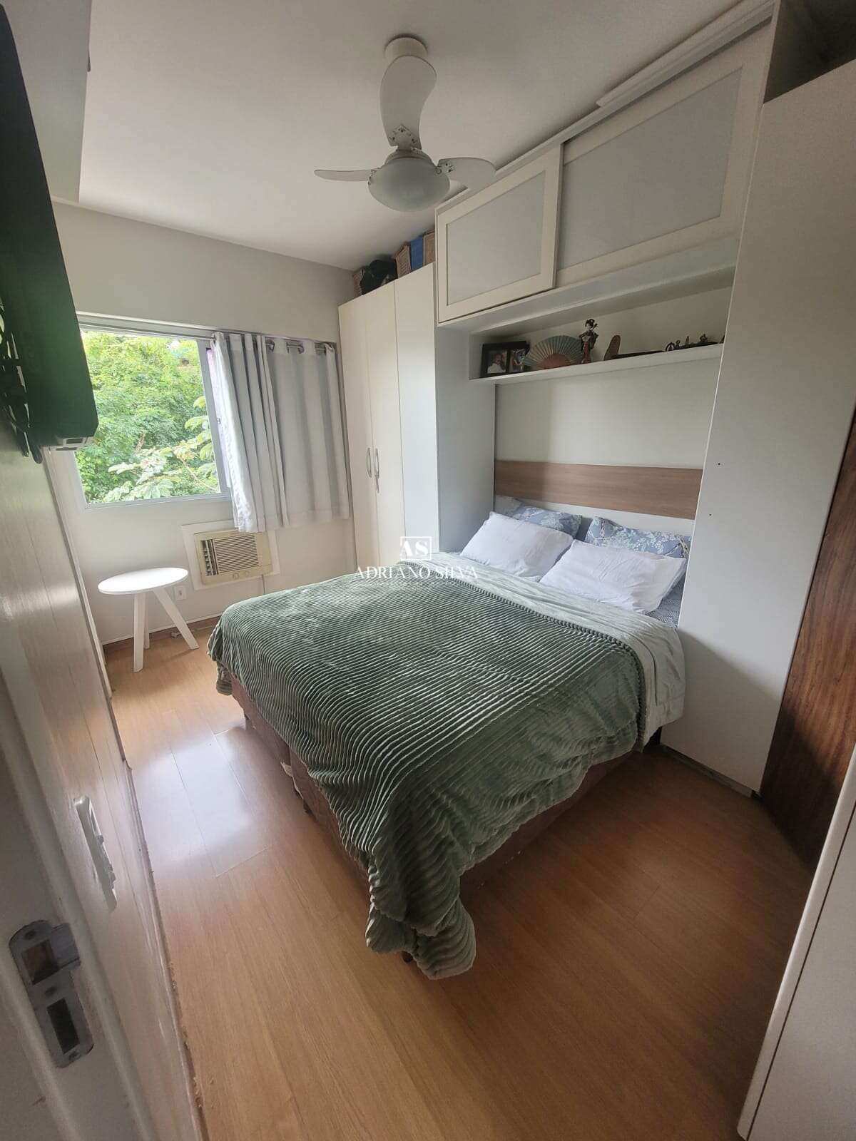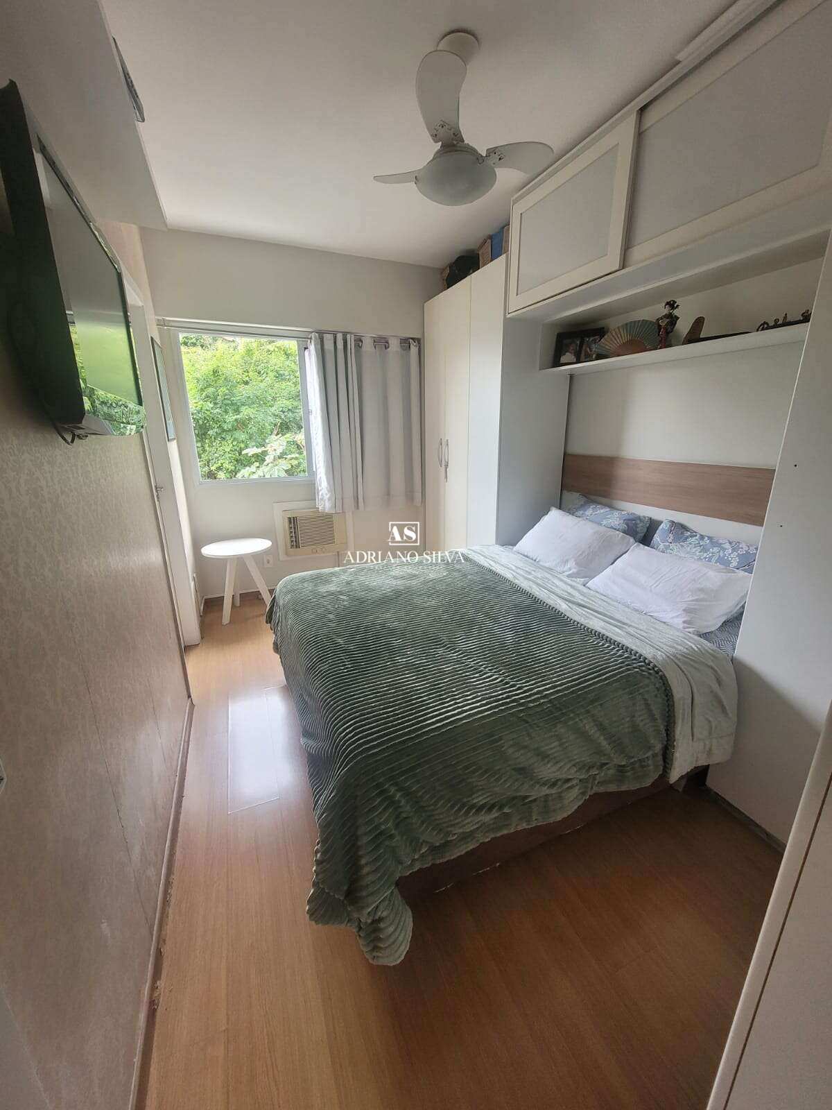 Suíte: espaçosa, com armário planejado em MDF, papel de parede, ar-condicionado e vista privilegiada.