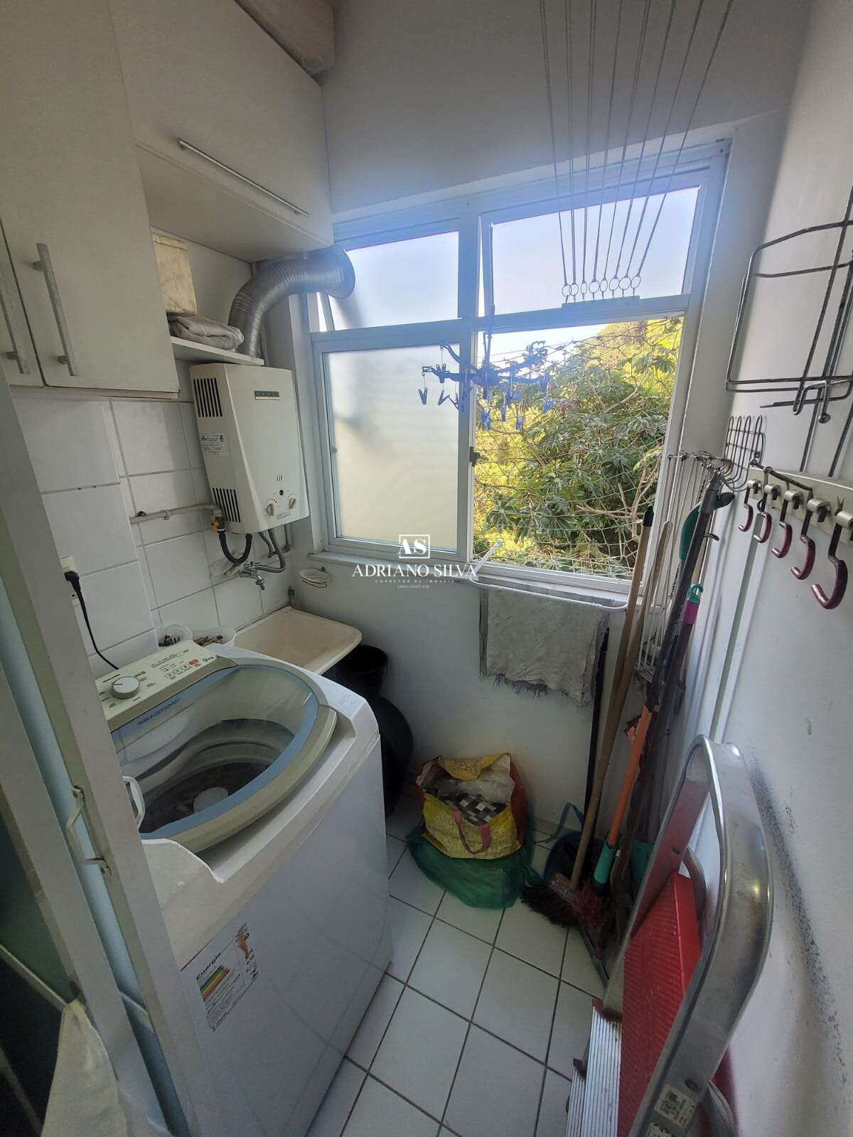 Área de serviço: separada por porta de correr em vidro, com armários planejados.